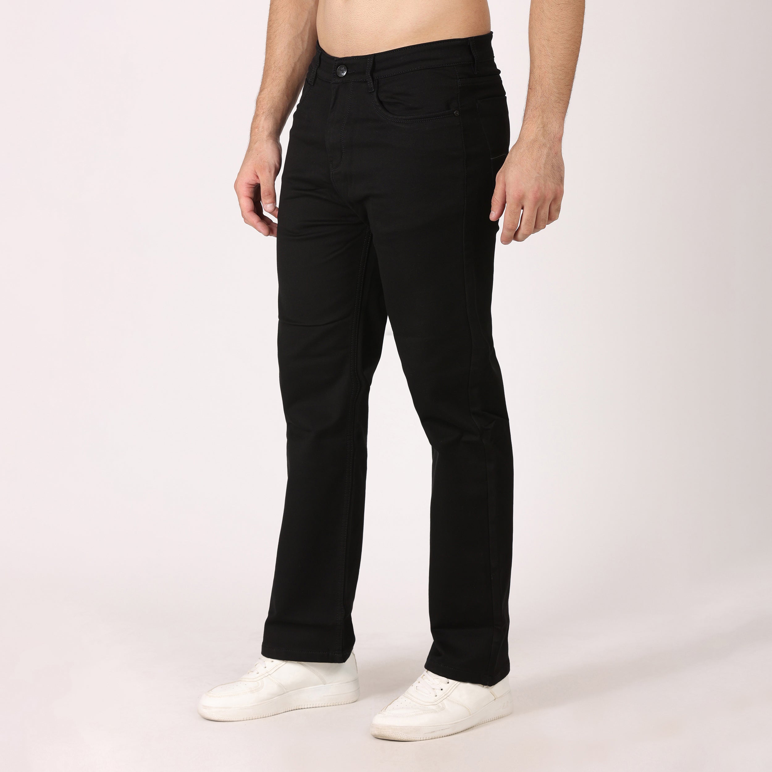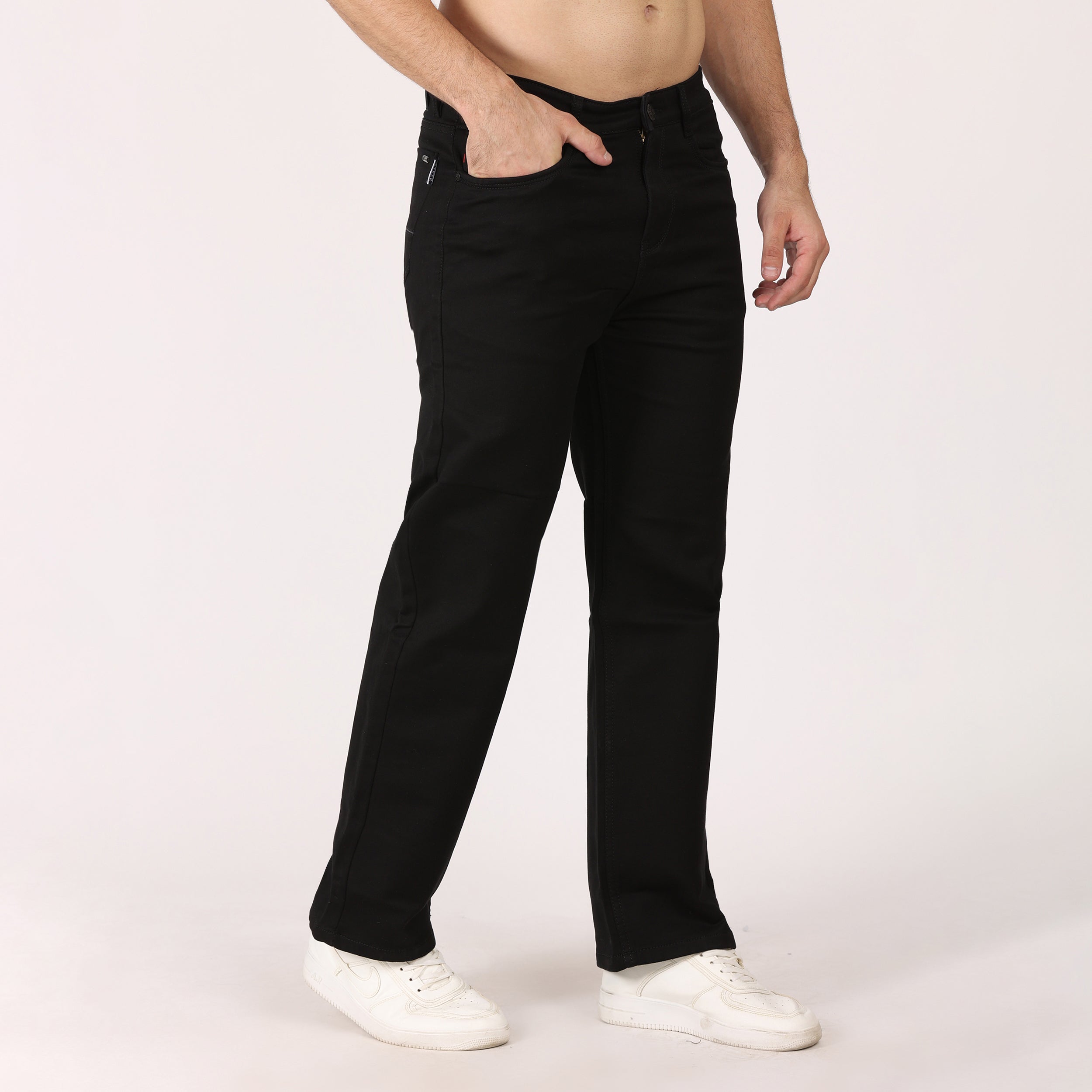 "Classic Comfort Fit: Designed with a relaxed silhouette that offers ample room through the hips and thighs, providing a laid-back yet stylish look. This timeless fit effortlessly complements a variety of outfits for versatile wear.
